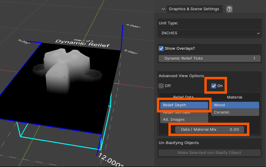 The Dynamic Relief, Sculpt Relief, and non-Relief Objects can be exported either as Mesh objects (.stl or .obj) or Depthmap Images. Export options are found in the Post-Processing Panel.