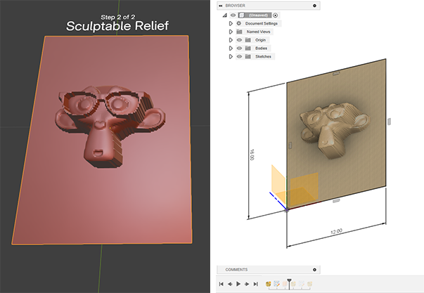 Example use: A Fusion360 Sketch with bottom-left corner at (0,0,0) origin. The Basify 3D export will fit exactly into a sketch of the same size.