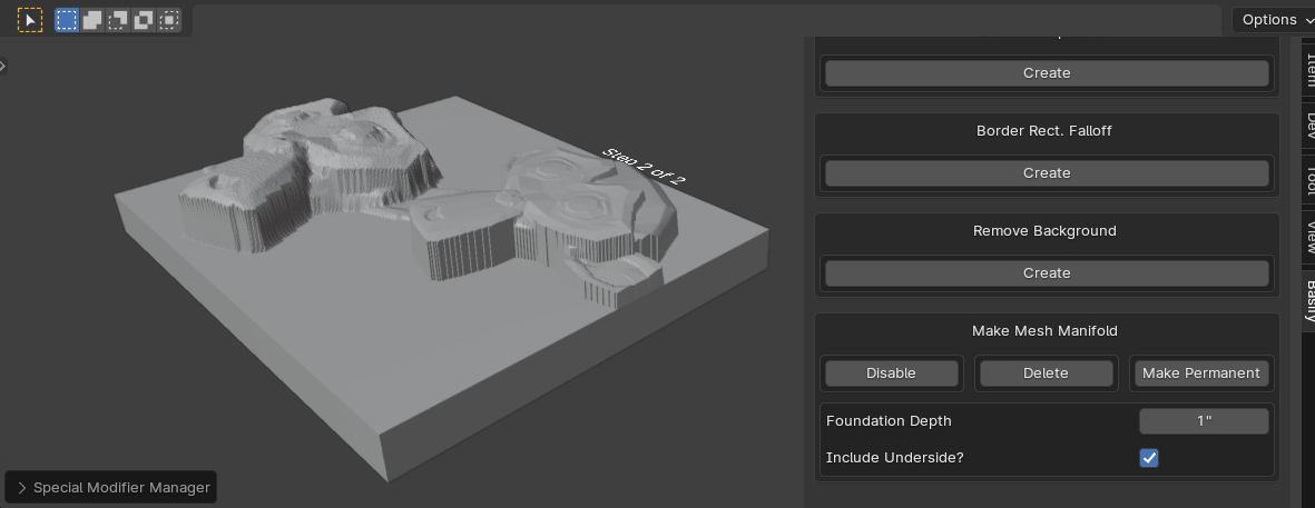When there is a sharp transition between the Relief background & a Mesh / Depthmap, this modifier will blur them together while preserving details.